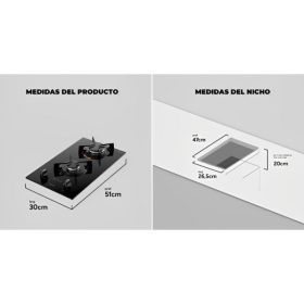 Cocina Anafe Atlas 2H Gas Cooktop U Top Glass Vidrio Templado