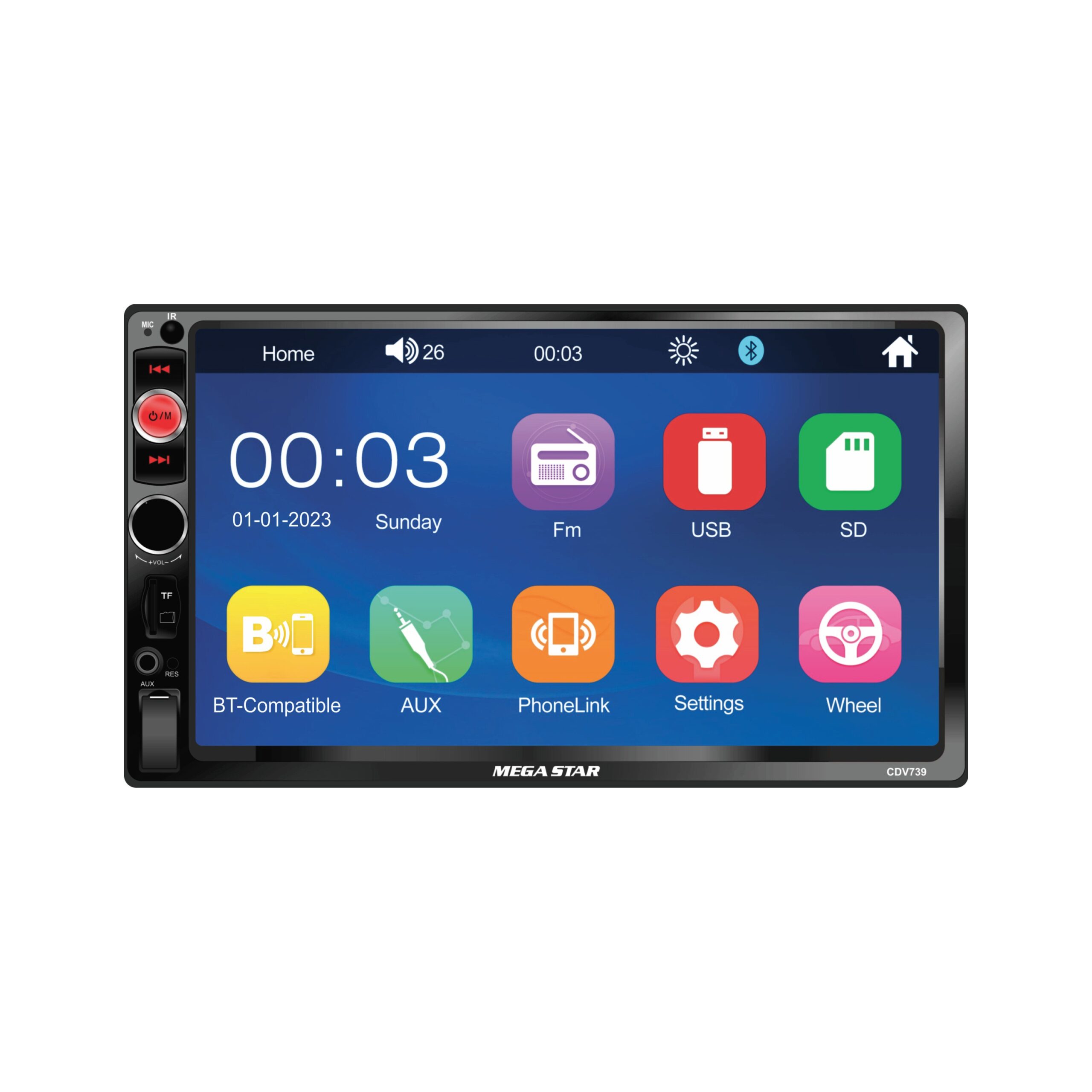 Autoradio Megastar Con Pantalla BT/USB/AM/FM Con Control MOD.CDV739