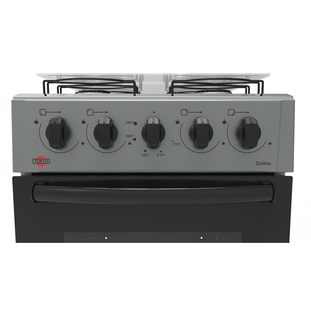 Cocina Tokyo Dallas 4H Gas Silver Mesa Inox Tapa Vidrio.