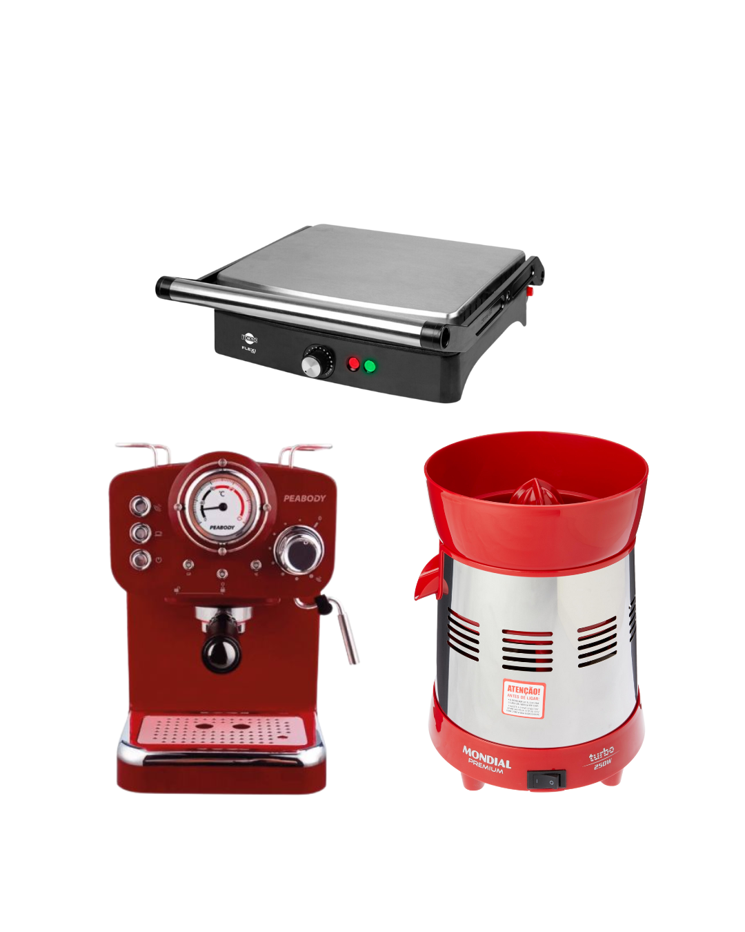 EXPRIMIDORA MONDIAL TURBO 250W MOD.E-24+CAFETERA EXPRESS PEABODY 20 BAR DE PRESION 1,25L 1100W+MIXTERA GRILL TOKYO CHURRASQUERA FLEXI 2000W