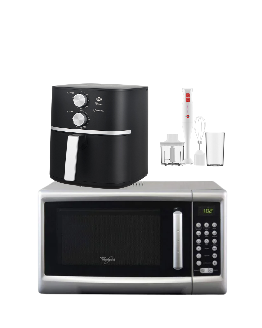 - Código del producto por separado: Microonda 2076, Freidora 31034, Mixer 19505