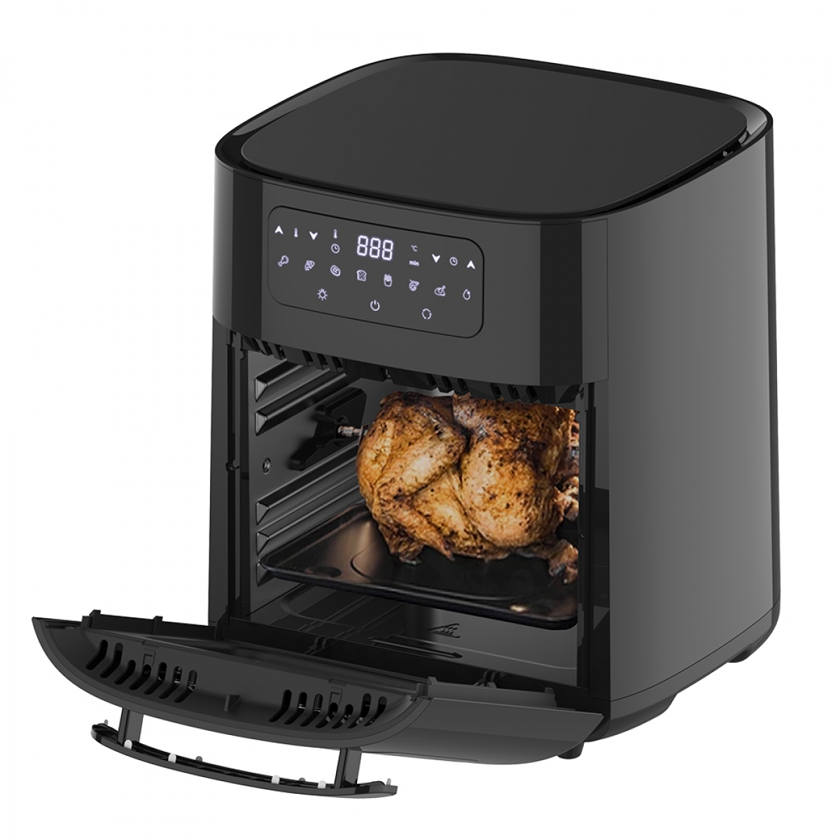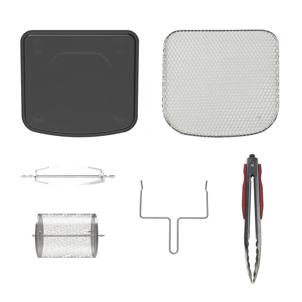 • Incluye: Canasta giratoria, Asadera, Rejillas Airfryer, Pincho para rostizar, Asa/Horquilla y Pinza metálica.