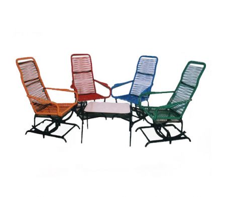 Juego de 4 sillones hamacables + mesita, ideal para compartir con la familia o amigos. Aprovecha nuestros super precios y adquiri este combo en Pira Pire Electrodomésticos.