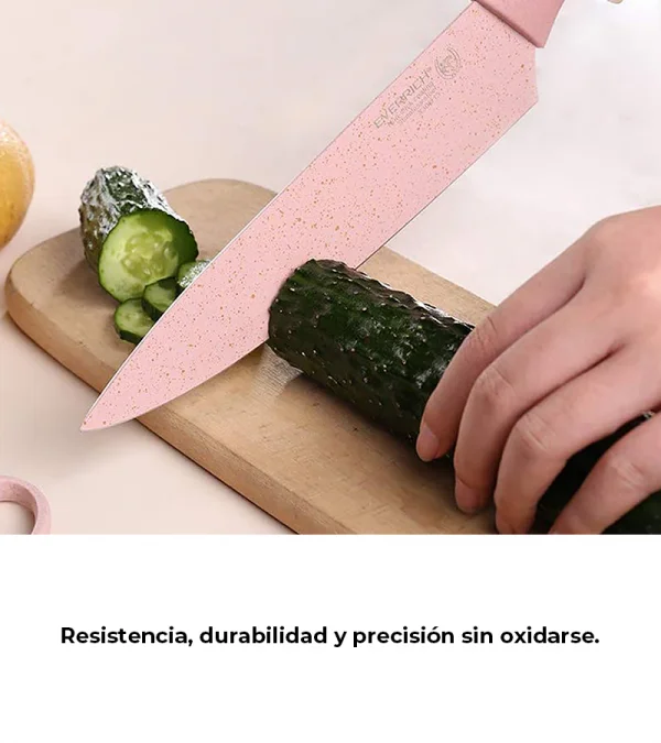 - Las cuchillas son ultra afiladas, este juego de cuchillos está hecho de alto carbono, es resistente y duradero. El revestimiento antiadherente de color es anti oxido, lo cual mantiene un aspecto suave, hermoso y duradero.
