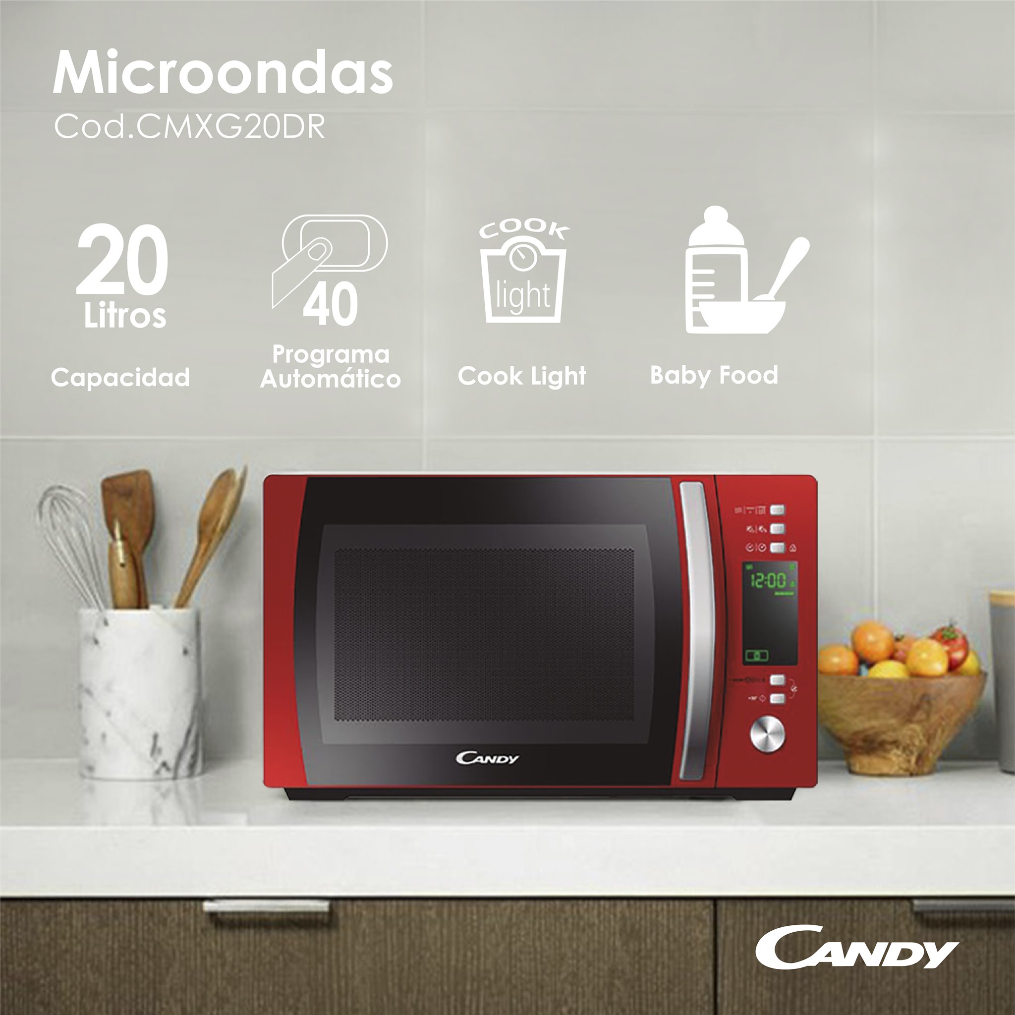 Microonda Candy 20lts C/ Grill Digital 700wts Rojo