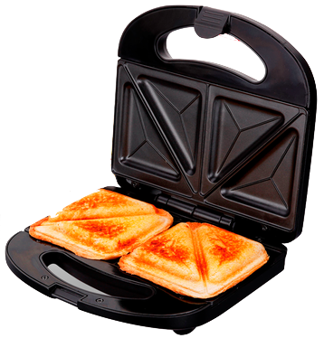 Con placas tipo grill antiadherentes, para preparación de sándwiches, mixtos y más. Capacidad para 2 panes.