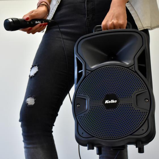 - Incluye: Micrófono con cable, Control remoto, Cable de carga y Cable aux.