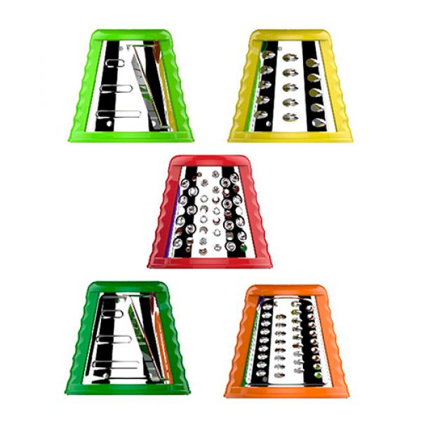 - Cuchillas para corte en rodajas delgadas y gruesas. Cuchillas para rallado grueso y fino. Cuchilla para molido. Accesorio para empujar alimentos.